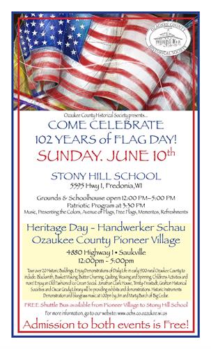 Flag Day at Stony Hill School: A patriotic celebration of our flag at Stony Hill School, the birthplace of Flag Day. Program at 3:30. Shuttle between Pioneer Village and Stony Hill-Come for both!